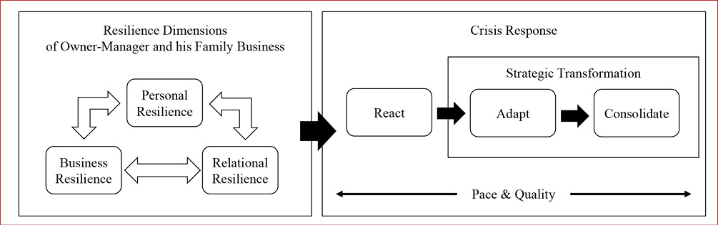 As argued above, we consider family business owner-manager’s strategic decision as a response to a crisis, with a special focus on business adaptation and transformation as central mechanisms of business resilience. Therefore, resilience can be understood as a prerequisite to strategy, both internalized in the owner-managers and their family businesses.