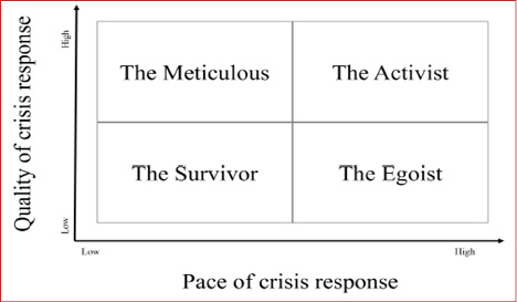 Thus, we identified four different types of owner-managers within their businesses based on their pace and quality of crisis response, explained by differences in their resilience configuration. Therefore, in this step, we organized the businesses with regard to their pace and quality in crisis response (i.e., low vs. high), related to different resilience dimensions (e.g., personal resilience), and corresponding codes (e.g., mindset or personal knowledge base).