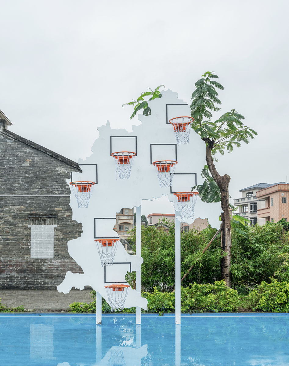 La primera de estas obras consiste en dos canastas de baloncesto realizadas expresamente para la trienal de arte público Art at Qiaoshan – Guangdong Nanhai Art Field, instaladas con carácter permanente en dos espacios públicos del área urbana de Foshan, en China. Estas canastas independientes constan de un tablero especialmente fabricado que incluye varios aros, en vez de solo uno, y tienen la forma del mapa de la zona en que se instalan, buscando así favorecer una identificación de la comunidad con estos objetos urbanos.