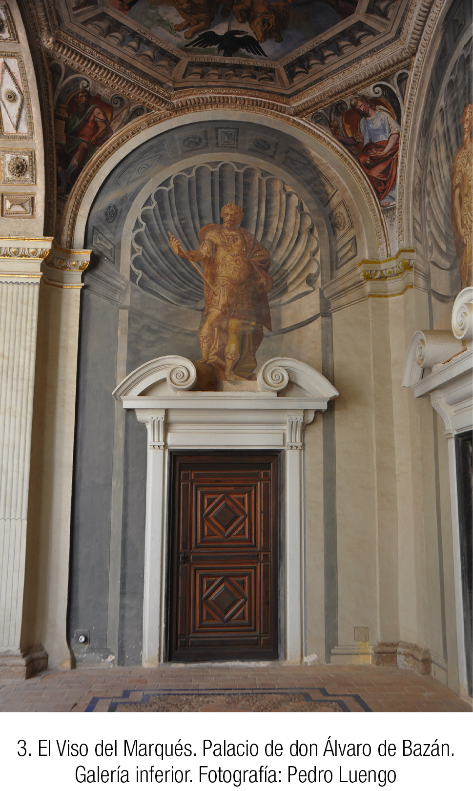 La historiografía ha alabado siempre tanto las grandes hazañas militares de don Álvaro de Bazán, I marqués de Santa Cruz, como el palacio que levantó en la población manchega de El Viso, en cuyos muros se pintaron sus victorias formando parte de un programa decorativo y simbólico que incluyó temas mitológicos, alegóricos y religiosos, además de personajes históricos, vistas de ciudades, falsas arquitecturas, paisajes y motivos de grutesco. Tan variado repertorio de imágenes, su técnica de ejecución al fresco y el propio diseño de sus espacios y elementos arquitectónicos, tanto reales como los que fingidos iban a articular sus fachadas, hacen de este palacio y de su jardín anexo la creación más italiana de todo el ámbito español del siglo XVI. No es por eso extraño que haya atraído la atención de los investigadores quienes, con diferentes enfoques y variados intereses, han tratado de clarificar su modelo, su proceso constructivo y la complejidad de su programa visual [1].