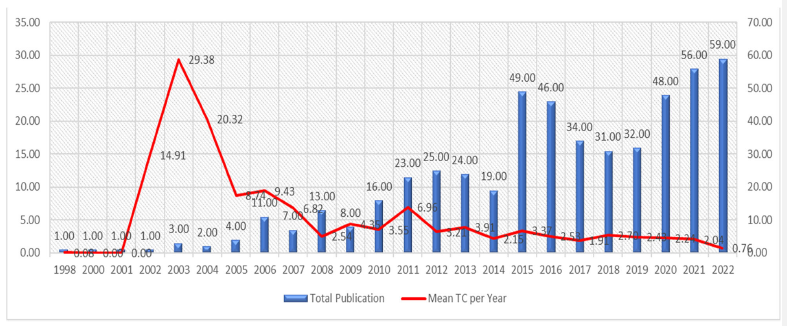 Figure 2. Total publication per year and mean total citation per publication
