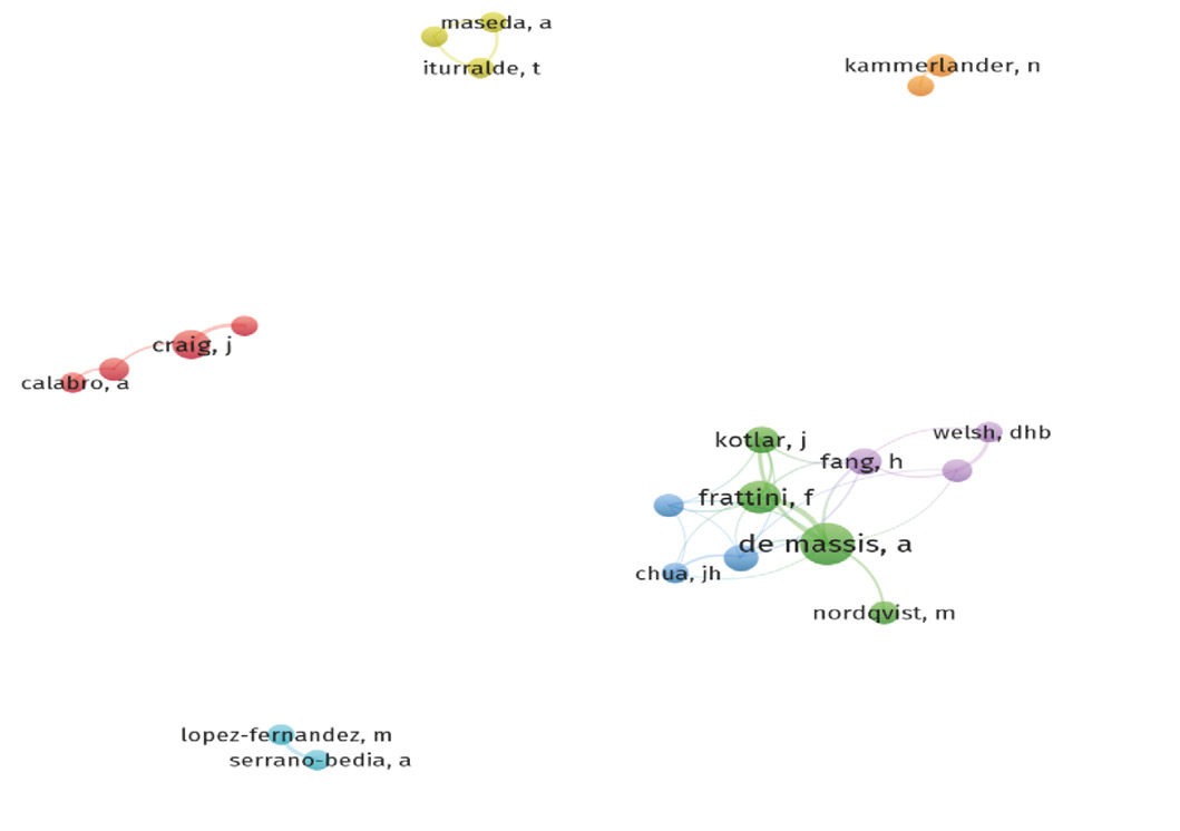 Although this study is not the first attempt to conduct a comprehensive and systematic review of academic IFF research, this article adds a bibliometric perspective to the IFF research topic, providing a synthesis and organization of existing knowledge in this research stream. Thus, this article provides a broad view of the research in this field and attempts to contribute to the increased generation of literature on IFF and, in doing so, facilitates the work of academics, students, consultants, family business entrepreneurs and sociologists. According to the study’s limitations, the information presented in this study is expected to be complementary and informative to other bibliographic literature reviews. Second, the dataset was gathered exclusively from the WoS database. Thus, data from other sources (e.g., Scopus and Google Scholar) were not used. Finally, co-authorship analysis has been used to identify the main research streams instead of other mapping techniques, such as co-citation and citation, to complete the bibliometric overview.