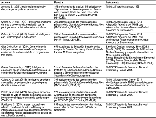 Inteligencia emocional en Argentina: una revisión sistemática de las investigaciones de los últimos 10 años