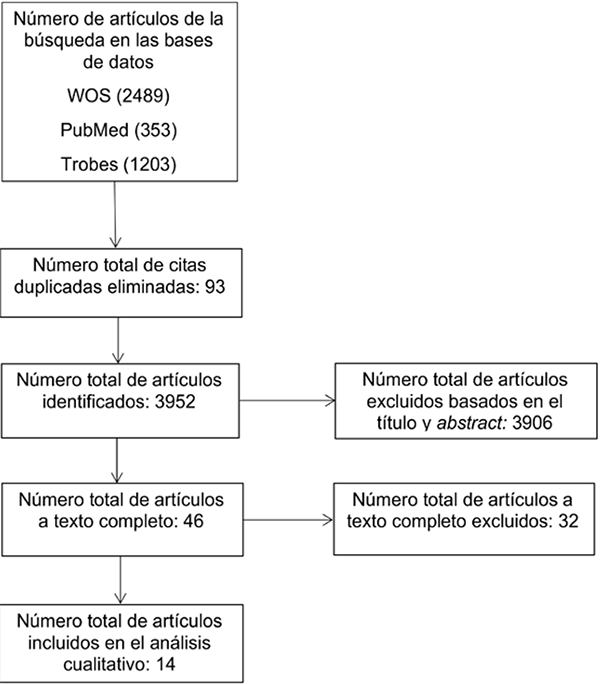 Para el presente estudio se han utilizado las bases de datos de PubMed, Web of Science, y aquellas disponibles en el buscador Trobes de la Universitat de València: ProQuest, Psicodoc, PsycArticles y PsycINFO.