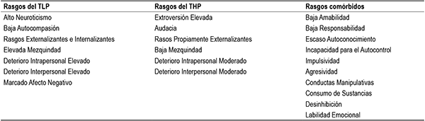 Rasgos de personalidad específicos y comórbidos en el TLP y THP