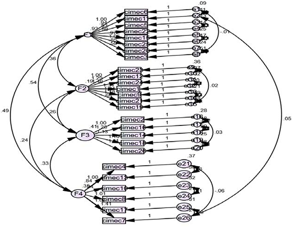 Estructura factorial confirmatoria para el CIMEC-26 en población mexicana.