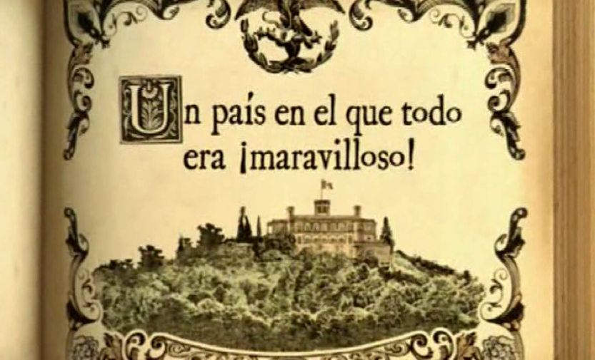 A continuación, asistimos al comienzo del relato, en un encadenado entre la ilustración del libro y la fachada real del Castillo de Chapultepec (F3). Se trata de un monumento emblemático ubicado en el corazón del bosque de Chapultepec, en Ciudad de México[6]. Este castillo, Museo Nacional de Historia desde 1939, ha sido escenario de representativos episodios de la historia nacional, por lo que condensa connotaciones diversas pero alusivas todas a la oficialidad. El relato funde dos significados principales, por un lado, el festejo en el castillo es un cronotopo idílico asociado al amor y la felicidad en los cuentos de hadas, pero este castillo, uniendo esta idea a evocaciones pretéritas a la monarquía colonial, apareciendo una corona en la primera página del libro. Por otro lado, juega su significado simbólico de defensa y creación del sentido actual de la patria mexicana desde el Porfiriato, así como del continuismo político del conservadurismo clasista y racista, lo cual se enfatiza en una secuencia en la que el ministro de economía llama “abuelo” a un retrato de Porfirio.