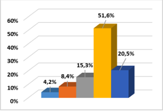Observando os resultados referentes a este ponto, a grande maioria das instituições prepara formações para melhorar a qualidade dos seus docentes. Verificamos uma frequência de 1,4% professores que não sabe ou não contesta, 64,7% afirmam que fazem as formações nas escolas onde leccionam 14,9% afirmam que as formações programadas pelo ministério da educação, e 19,1% afirmam que fazem as formações durante a sua formação acadêmica na universidade (figura 4). Aspecto que é fundamental nos programas de treinamento pedagógico (Rodríguez, & Hinojo, 2017).