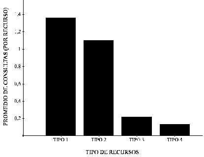 En la figura 5 aparece representado ese promedio, de manera que puede verse cuántas veces se consultó cada uno de los recursos ofrecidos en cada tipo.