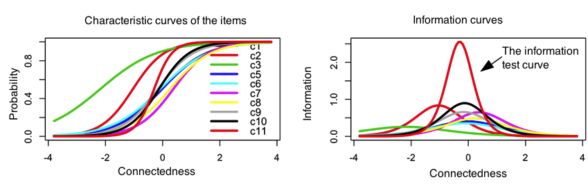 The IRT is an area of development in Psychometry. This statistical strategy assumes that there is a link between a person's latent trait and his or her response. This link, that can be expressed in terms of probability, is represented with the item curve characteristic (ICC). The latent trait models basic assumptions are: