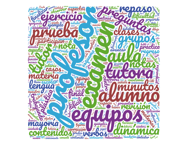 En este grupo no se usa libro de texto, el tratamiento de los temas es diferente pero fácilmente se pueden evaluar competencias de lengua, redactando un procedimiento en matemáticas, exponiendo un trabajo de sociales. Evaluar de esta manera, genera inquietudes no sólo en el centro, sino también a los padres que suelen preguntarle a través de la agenda del alumno ¿Cuándo es el examen de Lengua? (DPII_R)