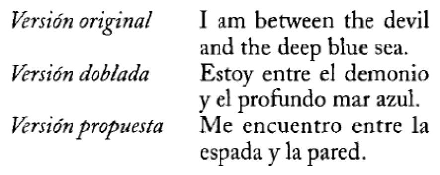 El cuadro siguiente muestra las tres versiones, la original, la doblada al español y la que se propone en este trabajo, atendiendo a los criterios discursivos mencionados en la introducción:
