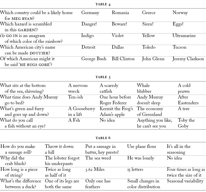 The same applies for the Nonsense Quiz even though it might be possible to literally translate some of the questions. Some examples in table 6.