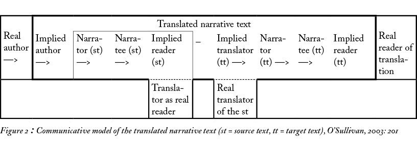 O’Sullivan s’est interrogée sur la voix du traducteur en utilisant les mêmes concepts de narratologie (2003). Elle a pour cela utilisé le schéma de Chatman (1978) (figure 1).