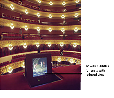 The technology in the new Liceu included the subtitling system Figaro that allows every seat in the theatre to follow the libretto in Catalan, English or Spanish. Surtitles and subtitles catering for linguistic accessibility opened the door to new accessibility services, which have been implemented progressively. The Barcelona Liceu has at its core a public wishing to understand the content of the opera, according to Mateo, 2007: 137):