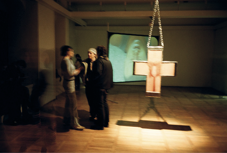 Plate 5. /Dorota Nieznalska Pasja (2001) at the New Works exhibition, Wyspa Gallery, Gdańsk (Poland). Photograph from the opening of the exhibition by Dorota Nieznalska, image: Sławomir Mielnik / Agencja Gazeta; Courtesy of Gazeta Wyborcza.