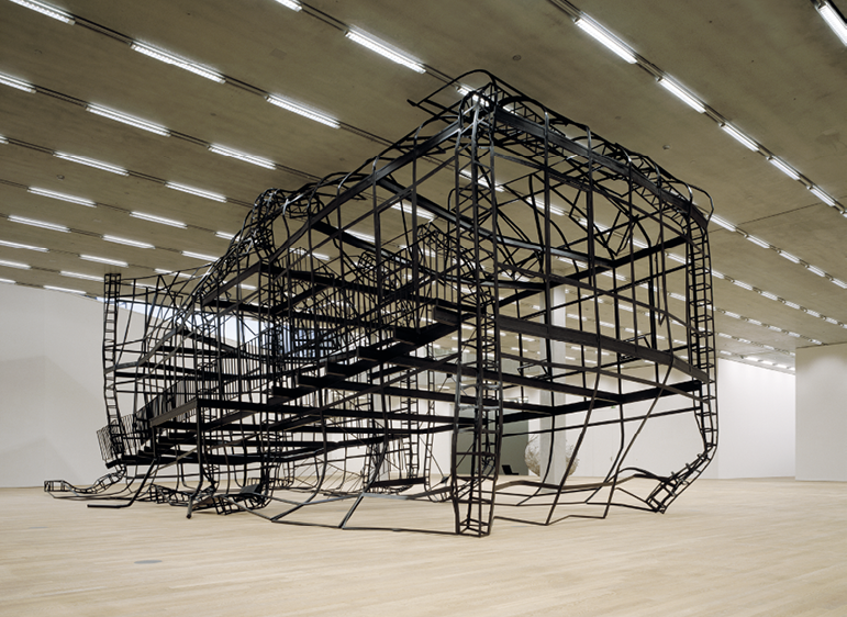 Plate 15. /Installation view: Monika Sosnowska, 1:1, 2007/2008, steel construction, installation at Schaulager: 19’ 8” x 24’ 11” x 48’ 7”, construction produced in 2007 by Zacheta National Gallery of Art, Warsaw, Courtesy Foksal Gallery Foundation, Galerie Gisela Capitain, kurimanzutto, The Modern Institute, exhibition „Andrea Zittel, Monika Sosnowska. 1:1“, 26 April – 21 September 2008, Schaulager® Münchenstein/Basel, © Monika Sosnowska, photo: Tom Bisig, Basel.