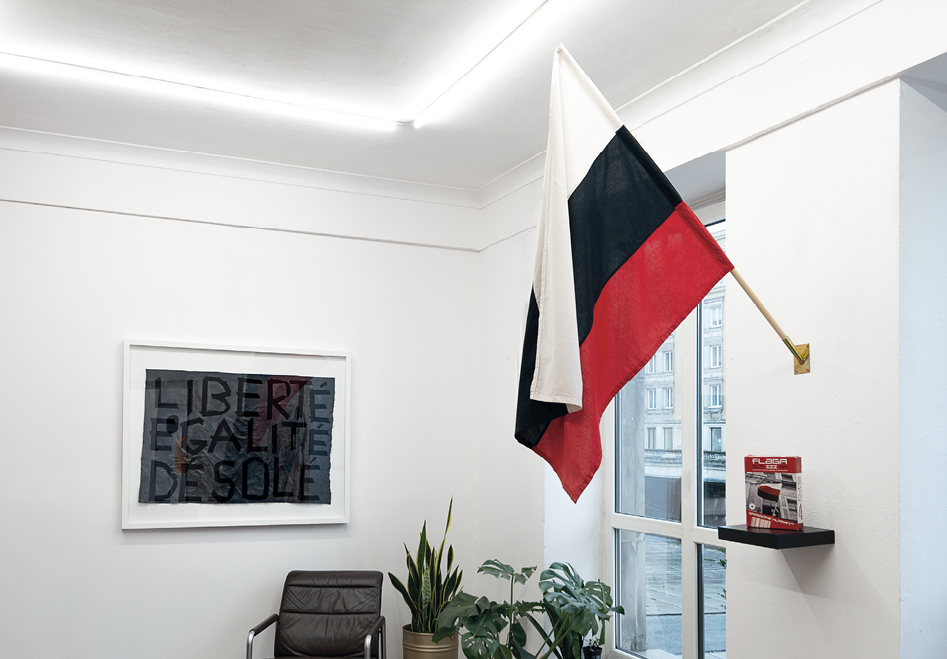Plate 18. / Grzegorz Klaman (2001) Flaga dla III RP (Flag for the 3rd Polish Republic), exhibited at Between Salvation and the Constitution, BWA Warszawa, 2018; Image: Bartek Górka; Courtesy of the BWA Warszawa Gallery.