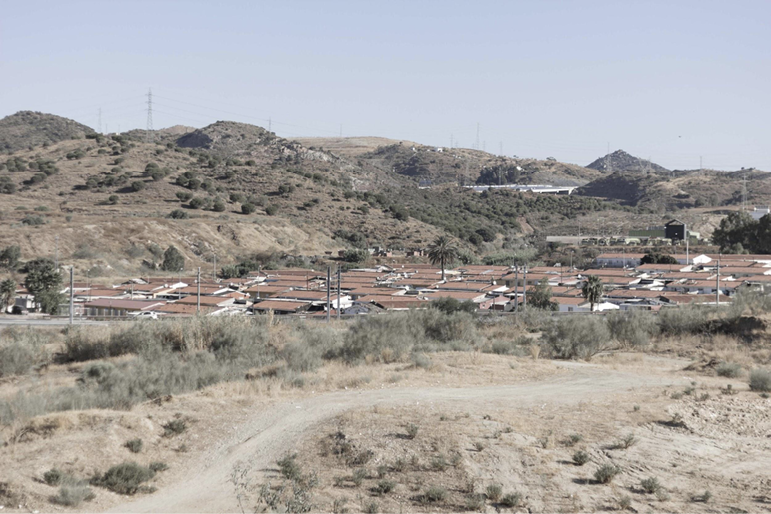 En 1987 se fundó el barrio de Los Asperones en la periferia de Málaga para alojar temporalmente a más de un centenar de familias de etnia gitana provenientes de diversos asentamientos chabolistas. El desplazamiento desde sus núcleos de origen crearía graves problemas de desarraigo, una situación que con el paso de los años ha desembocado en una insostenible situación de marginalidad y exclusión. En esta barriada, como denuncia Miguel López Melero, «no se cumple ninguno de los derechos humanos. Si repasamos los treinta derechos humanos, yo creo que en Los Asperones no se cumple ninguno [...], ni de la vivienda, ni de la educación, ni de la salud, ni nada» (Rivas y Rivas, 2020). Un alto porcentaje de sus habitantes vive en situación de pobreza extrema y aún hoy, tres décadas más tarde, esta población continúa a la espera de una respuesta acerca de su futuro por parte de las instituciones competentes [Fig. 02].