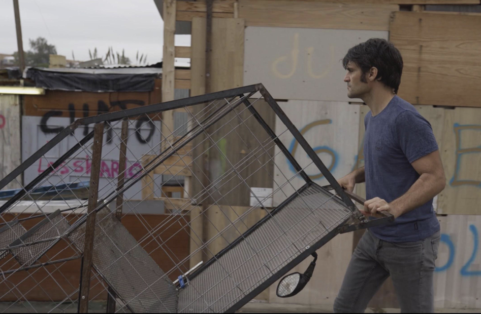 Fig. 10. Eugenio y María Rivas (2020). A 15 minutos de Los Asperones. Acción. [Fotograma del vídeo. Detalle]. Málaga: Lucas Alcántara.