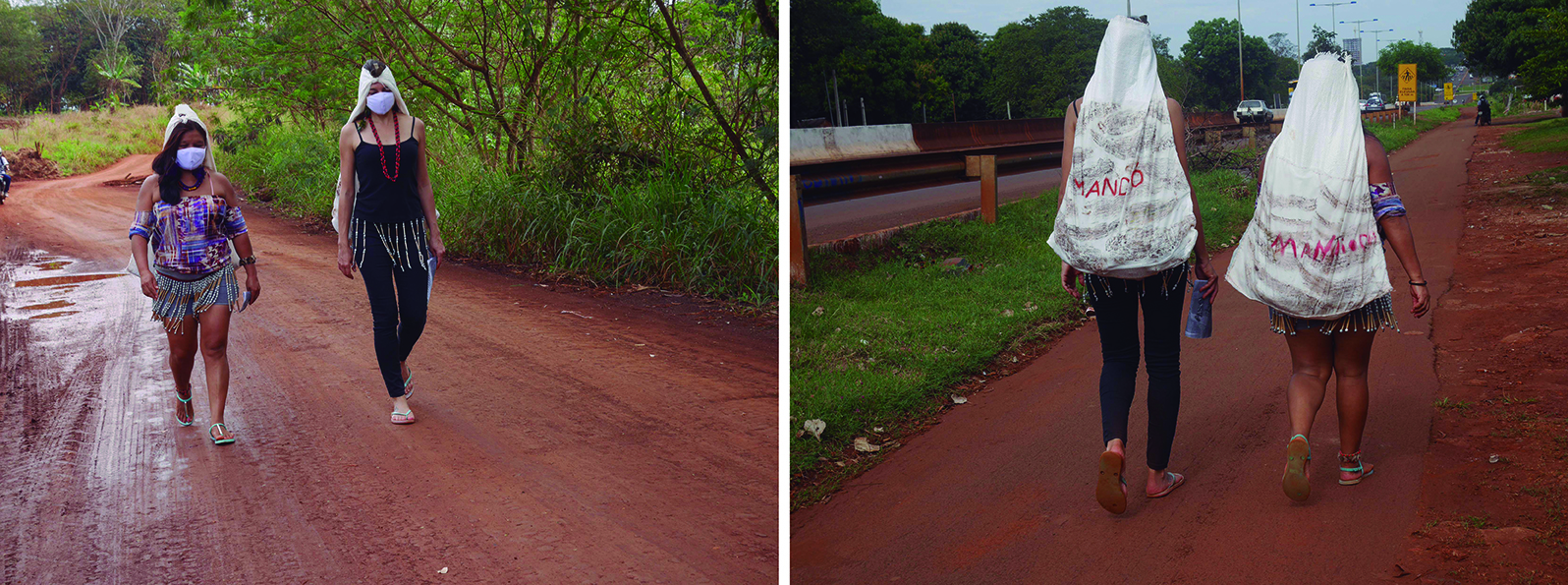 Image 4 and Image 5. Initial Milestone: A Tribute To The Old Spirits Of Dourados’ Earth35 – Kunha Ysapy and Letícia Larín. Performance (Approximately 3 hours of walking). Photos by Elle Souza. Dourados, Brazil. 2020. (Source: Author’s Collection)