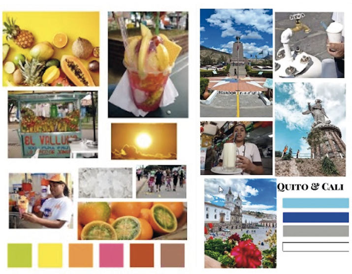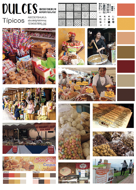 Fig. 16. Moodboard dulces tradicionales. 2020. Fotografías extraídas de trabajos de estudiantes de primer nivel, primer semestre 2020 de la Pontificia Universidad Javeriana (PUJ) de Cali y Pontificia Universidad Católica del Ecuador (PUCE).
