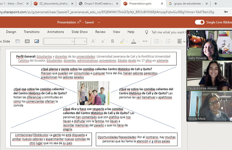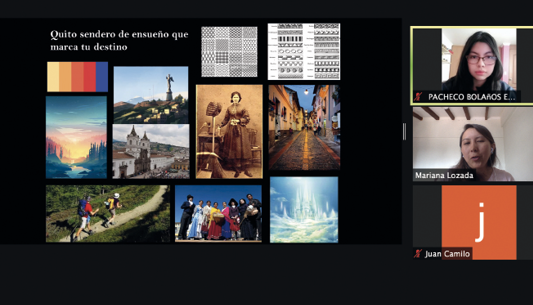 El contexto académico en el cual se desarrolló el proyecto fue mediante el sistema Collaborative Online International Learning o de Aprendizaje Internacional Colaborativo en Línea (COIL)2, que en el caso de la PUCE se promovió con gran fuerza a través de las universidades con las que posee convenios o alianzas estratégicas, y que desde la Facultad de Arquitectura Diseño y Artes se logró el vínculo con la PUJ de Cali para trabajar en las materias eje de primer semestre, antes mencionadas, para promover la investigación en proyectos de diseño, vincular a los estudiantes con el público objetivo y comprender los resultados de dicha investigación para tomar decisiones en el diseño de una agenda calendario 2021 denominada “Miradas escondidas del Centro Histórico de Quito y Cali”, que refleje visualmente la riqueza cultural que comparten ambas ciudades.