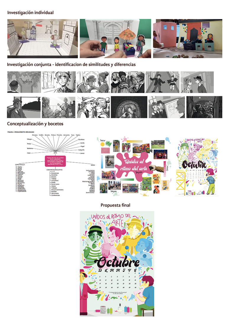 En esta fase se promovió la escucha, la vinculación con los actores directos y el enlace a sus historias, relatos y vivencias, así como a la memoria histórica y social, pues a pesar del distanciamiento social, era importante que los estudiantes pudiesen sentir por si mismos estas vivencias, aprecien su riqueza propia y sean capaces de diferenciarla o relacionarla con la realidad de otro entorno, conexiones que les permitiría posteriormente generar un solo producto que represente a ambos entornos.