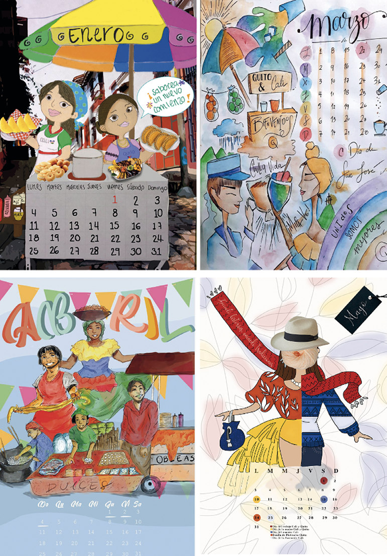 Como producto final se culminó con el prototipo del Calendario 2021 denominado “Miradas escondidas del Centro Histórico de Quito y Cali”, mismo que requiere algunas correcciones para terminar con la propuesta y poderla imprimir.