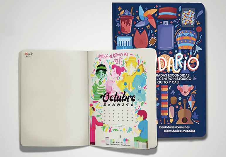 Es una experiencia pedagógica que parte de un proceso de observación guiada atravesada por lo experiencial y sensorial, que busca redescubrir la identidad a través de la mirada de elementos visuales urbanos así como de las dinámicas urbanas propias de la cultura y la sociedad de los lugares observados: el Centro Histórico del Distrito Metropolitano de Quito y el de Cali, para posteriormente reinterpretar sus códigos, conectar las dos culturas y proponer nuevos discursos visuales compartidos y cruzados, dando como resultado la agenda calendario 2021 denominada “Miradas escondidas del Centro Histórico de Quito y Cali”.