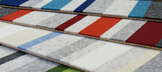La combinación del respaldo de corcho con fieltro (filzfelt®) de lana crea un sistema de revestimiento de paredes duradero y acústicamente absorbente. Aunque hay diferentes variaciones, en función de los modelos, los revestimientos registran coeficientes de reducción de ruido (NRC) de hasta 0,20. (Amorin Cork, 2021).