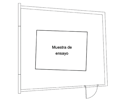Se realizó un montaje tipo A. Alrededor de la muestra se instaló un perímetro de listones de madera cubriendo los laterales. Las dimensiones de la muestra fueron de 3810 x 2850 mm, con un espesor de 24 mm. La superficie de la muestra bajo ensayo es de 10,80 m2.