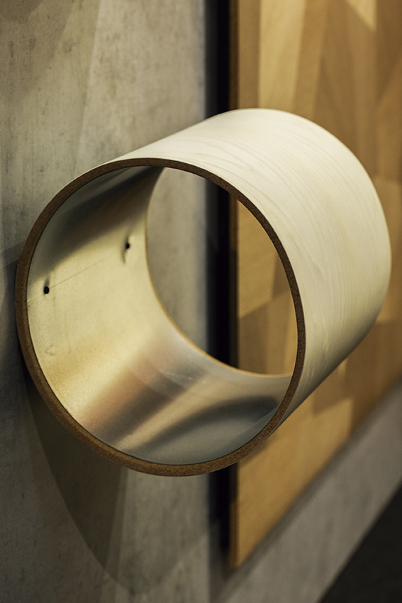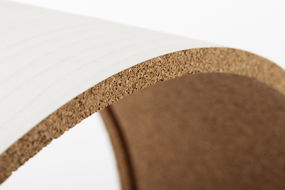 Las primeras pruebas desarrolladas se realizaron con el material de compuesto de fibra (Lanisor®), este material aporta unas características muy interesantes en absorción de ruido y en propiedades ignífugas. Las pruebas técnicas2 no fueron satisfactorias y por ello se decidió continuar en esta línea de investigación pero con otros materiales capaces de satisfacer las expectativas del proyecto. De esta forma y tras múltiples testeos llegamos hasta el corcho. Una materia prima obtenida directamente de la naturaleza, reciclable y con unas propiedades fonoabsorbentes adecuadas para los requerimientos que estábamos planteando.