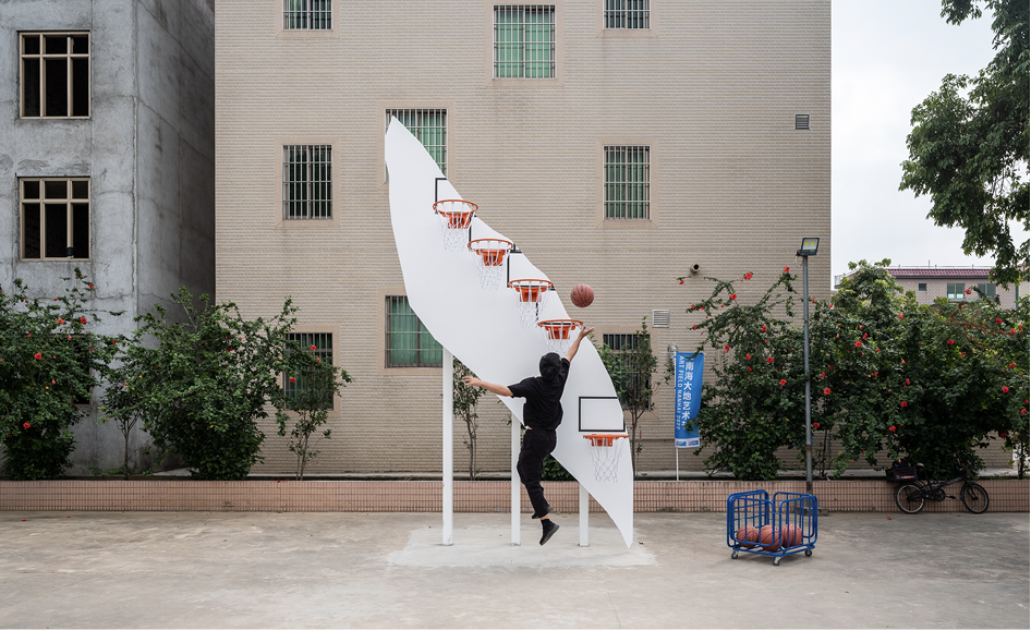 La primera de estas obras consiste en dos canastas de baloncesto realizadas expresamente para la trienal de arte público Art at Qiaoshan – Guangdong Nanhai Art Field, instaladas con carácter permanente en dos espacios públicos del área urbana de Foshan, en China. Estas canastas independientes constan de un tablero especialmente fabricado que incluye varios aros, en vez de solo uno, y tienen la forma del mapa de la zona en que se instalan, buscando así favorecer una identificación de la comunidad con estos objetos urbanos.