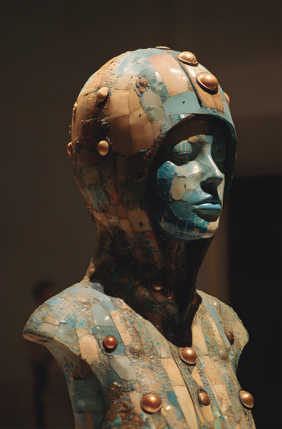 Desconocido. Busto de Esmalte de Cerámica con incrustaciones de Cobre Patinado. 9600 a. C. 72 cm. de altura